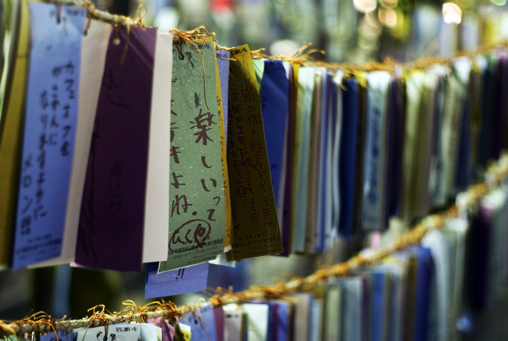 Tanabata v Sendai. Tanabata se v Japonsku slaví v různých termínech během července. Lidé píší přání na malé papírky a uvazují je na větve stromů. Ve městě Sendai se slaví v srpnu a je známá svými propracovanými papírovými plováky. Jaké je vaše přání na Tanabatu? Když jsem byl na homestay v Tokiu, moje hostitelská sestra si přála stát se králíkem. Příští léto je navštívím a uvidíme, zda se přání splnilo...