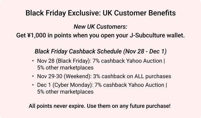J-Subculture makes it simple: No Japanese needed, no auction stress, no confusion. Just authentic Japanese products, exceptional prices, and a surprisingly smooth experience delivered to your UK address.