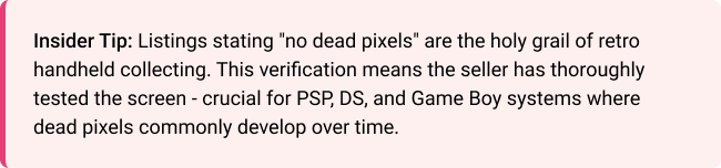 Everything is described with scientific precision. If there's a dust particle, they'll tell you. If the box has a "tiny scratch, maybe possibly on the corner somewhere", they'll list it like a medical report.